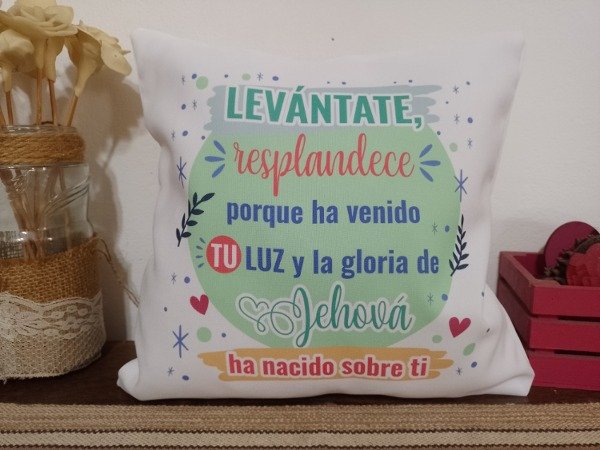 Almohadón de tropical mecanico, funda desmontable. Relleno con vellon siliconado con funda de friselina.